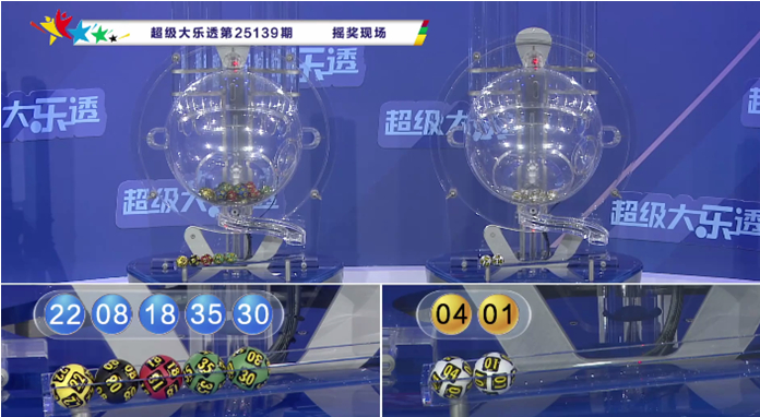 上期开奖:大乐透第2025139期开奖号码为:08、18、22、30、35+01、04。